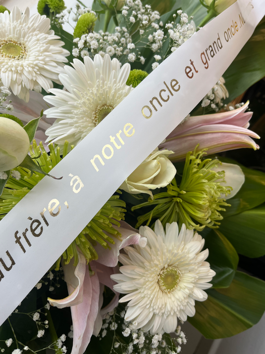 Personalized ribbons add a unique and refined touch to every bouquet. They bring a personal and meaningful detail, turning a floral arrangement into a truly customized message.